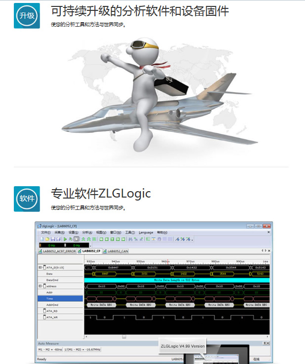 32通道,采樣頻率100MHz,帶寬30MHz,總存儲(chǔ)容量4Mbits(每通道存儲(chǔ)容量最大128kbits,支持?jǐn)?shù)據(jù)壓縮存儲(chǔ)),輸入電壓-30V~+30V,集邏輯分析儀、總線分析儀、頻率計(jì)、協(xié)議分析儀、邏輯筆等多種測(cè)量開發(fā)儀器于一身,支持SPI、I2C、UART、CF卡等20余種總線協(xié)議分析。