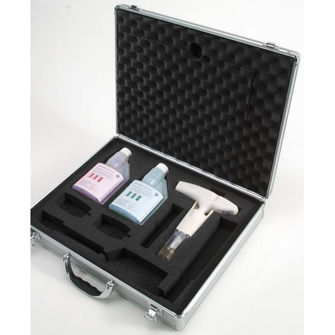 testo 205pH酸堿度/溫度測量入門級套裝,包含凝膠保護帽,250mL標定液,pH4和pH7標定液,支架和鋁制儀器箱。