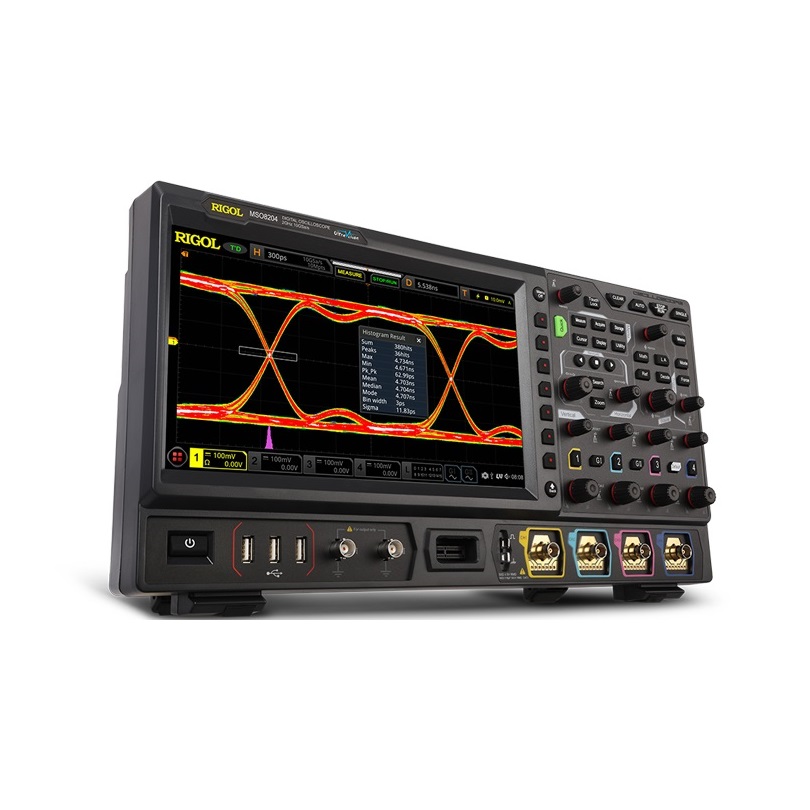 數字示波器,1 GHz(單通道和半通道模式);4個模擬通道,1個EXT通道,標配16個數字通道(需選購探頭);實時采樣率最高達10 GSa/s; 最高存儲深度達500 Mpts(標配);波形捕獲率高于650,000個波形每秒;多達45萬幀的硬件實時波形不間斷錄制和回放功能;集7種獨立儀器于一身,包括:示波器、16通道邏輯分析儀、頻譜分析儀、 任意波發生器(選件)、數字電壓表、6位頻率計和累加器、協議分析儀(選件);多達41種波形參數自動測量,更提供全內存硬件測量功能;多種數學運算,內置增強FFT分析和峰值搜索功能;標配波形直方圖分析;獨立的搜索、導航按鍵和事件列表;實時眼圖和抖動分析軟件(選件);內置高級的電源分析軟件(選件);用戶可定義的Quick一鍵快捷操作;10.1”多點觸控電容屏,256級波形灰度顯示,帶彩色余輝;豐富的接口:USB Host & Device、LAN(LXI)、HDMI、TRIG OUT、USB-GPIB;支持Web Control遠程命令控制;獨有的在線版本升級功能;精巧便攜的工業設計,快捷的操作控制。
