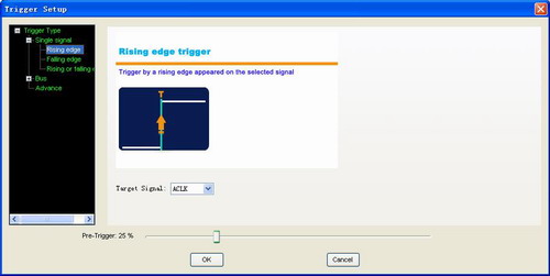 5. 具有多種觸發方式,可以在很長的數據流中,對所觀察分析的那部分信息做出準確的定位,從而捕獲對分析有用的信息,對于軟件分析,它可利用其觸發功能跟蹤運行的程序。對于硬件分析,觸發功能可以檢測并顯示系統中存在的干擾和毛刺。