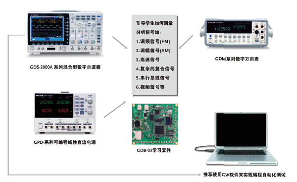 GDB-03專業教學實驗設計,引導學生學習如何用示波器等來測試各種常見信號等